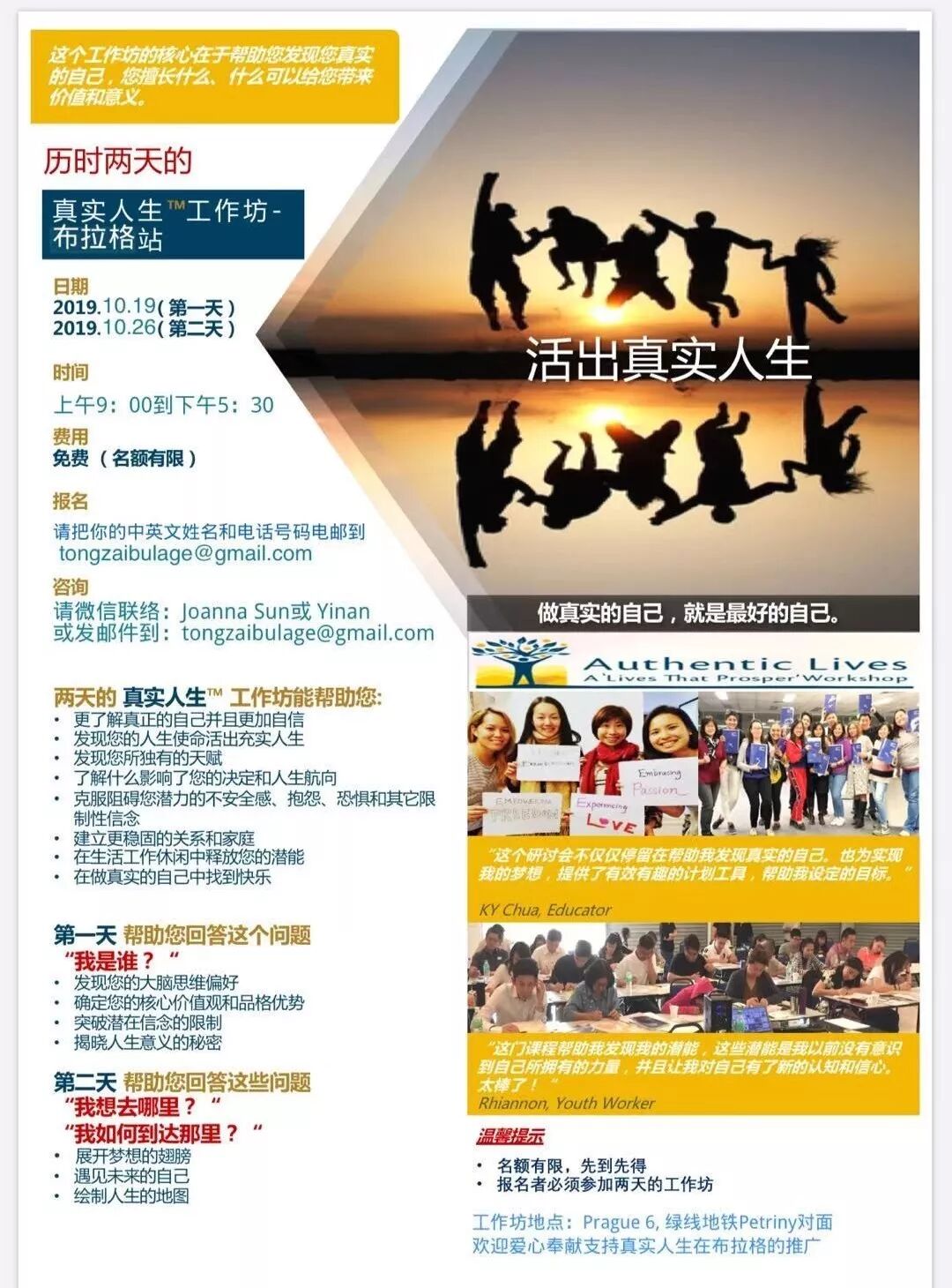 早在去年年底听朋友Job说到他去伦敦参加了一个工作坊,对他启发很大,短短的两天内认识了很多新朋友,分享欢乐、泪水、人生经历。他说学到了很多东西,以后会和我们分享。Job是新加坡华人,已是耳顺之年,有多年在政府、私企、非盈利机构的工作经历,也有在很多不同文化中的生活经历。我很好奇是什么样的工作坊让他有如此大的感触。今年5月Job邀请我参加在布拉格为期两个周六的工作坊,原来他已经把名为“真实人生”的工作坊带到了捷克。看了工作坊的宣传内容我很想参加。作为全职妈妈能腾出两个周六全天不容易,感谢我先生的大力支持,他愿意带孩子两天让我能参加工作坊。虽然第一个周六的前一天晚上出了个小插曲,我先生当时在外地无法赶回来,但是感恩当晚我找到了一个朋友可以来我家帮我看一天小孩,让我可以顺利地按计划参加。工作坊正式开始前Job发给了参加者一些准备内容,需要大家提前做一些调查问卷然后带着问卷结果来工作坊。提前做准备的感觉像是回到了学生时代,仿佛上课前的预习一样。两天的工作坊确实让我收获很多。我更加了解了自己:知道自己的品格优势和自然偏好;了解自己过去的经历,审视现在的生活,明确未来的人生方向以及学习如何规划今后的生活。当时我们正面临生活中的重要抉择。工作坊的内容也帮我梳理了很多由此带来的情绪和压力,让我可以直面变化和挑战。工作坊结束时我就希望有机会让更多的朋友来参加。